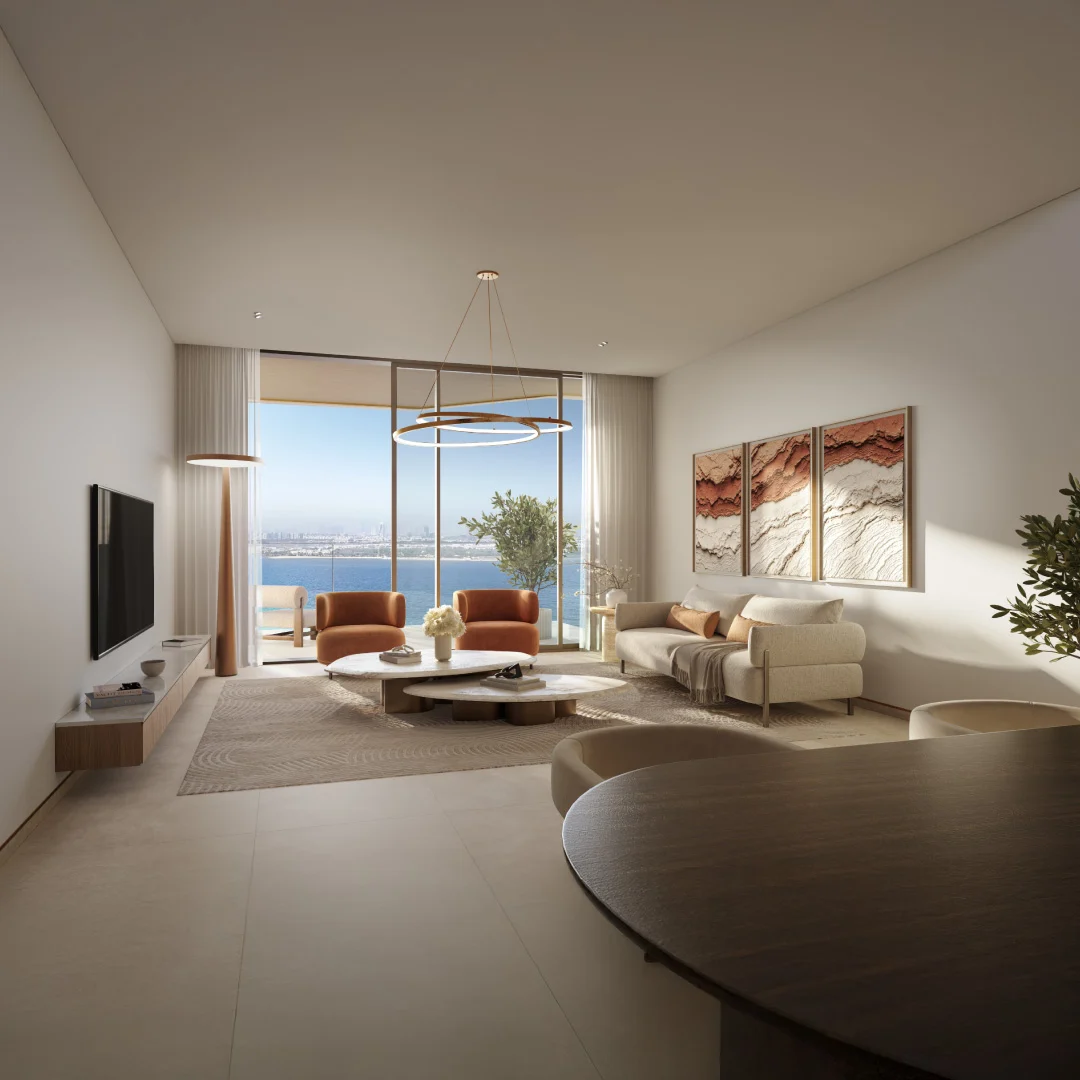 Residents enjoy direct access to the promenade, along with parks, sports courts, retail spaces, mosque, boardwalk, fitness centre, kids’ play area, swimming pool, beaches, and a yacht marina—creating a complete lifestyle destination.