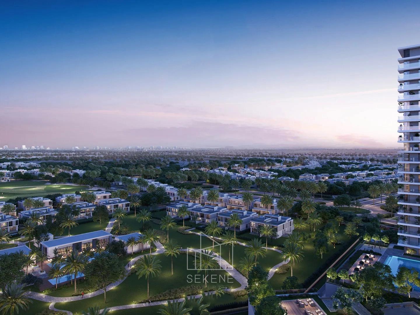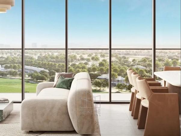 With the iconic Burj Khalifa and the Dubai skyline as a backdrop, it promises a sophisticated address. The Dubai Hills community, adorned with art installations and lush trees, is designed to seamlessly blend modern living with the lush backdrop of a sprawling golf landscape.